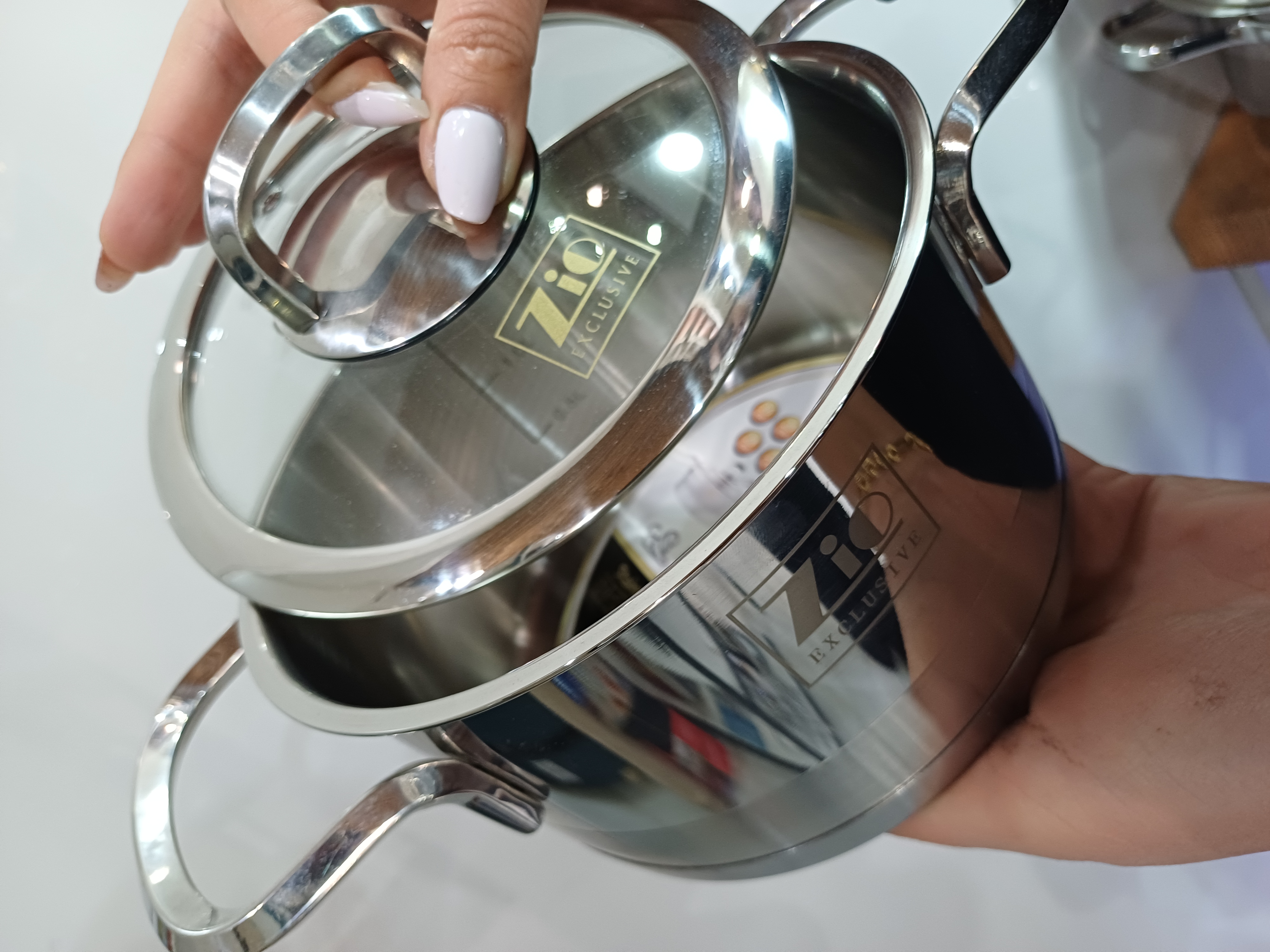 برند زیو (Zio), مدل ZCS-1360, جنس استیل ضد زنگ, تعداد پارچه ۸ قابلیت شستشو در ماشین ظرفشویی دارد, دسته مقاوم و نسوز, درب استیل با کیفیت, مقاومت حرارتی بالا, رنگ نقرهای, مناسب آشپزخانه خانگی و حرفهای
