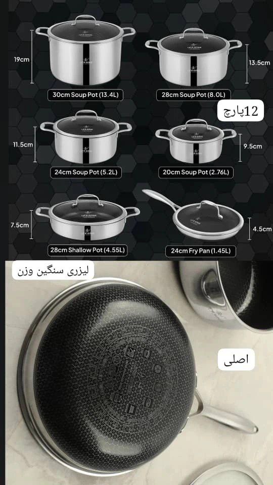 سرویس پخت و پز ۱۲ پارچه استیل لایف اسمایل (Life Smile) با تکنولوژی تیتانیوم لیزری