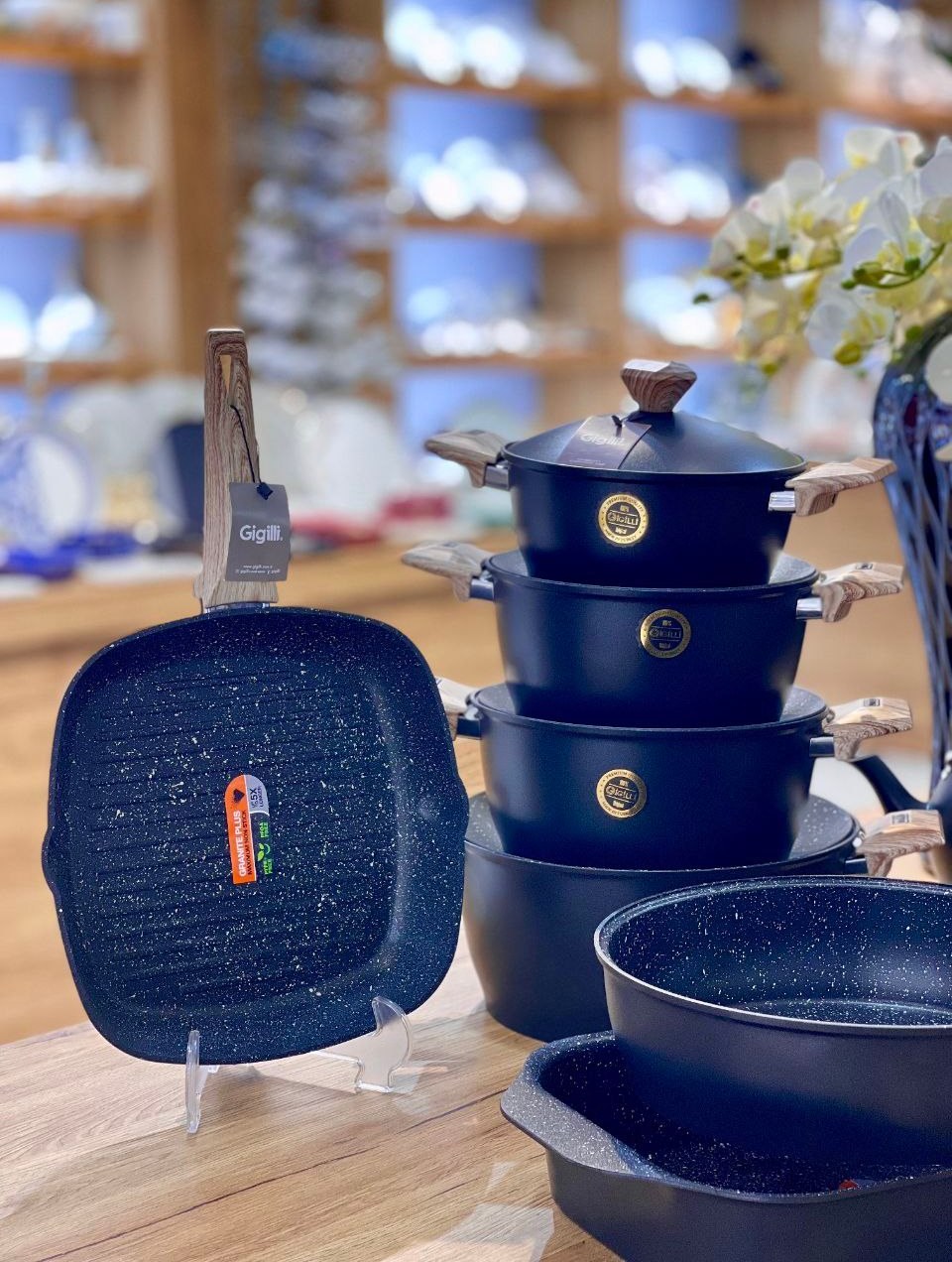 نقطه قوت این سرویس، تنوع بی سابقه اقلام آن است. برخلاف سرویس های معمولی، گیگیلی علاوه بر قابلمه های استاندارد، شامل ابزارهای تخصصی مانند تابه گریل برای پخت سالم گوشت، تابه ووک برای غذاهای آسیایی، و حتی قالب های کیک و پیتزا میباشد. همچنین وجود ست قهوه جوش ترک و کتری هماهنگ با سرویس، هارمونی رنگی آشپزخانه شما را به کمال میرساند.